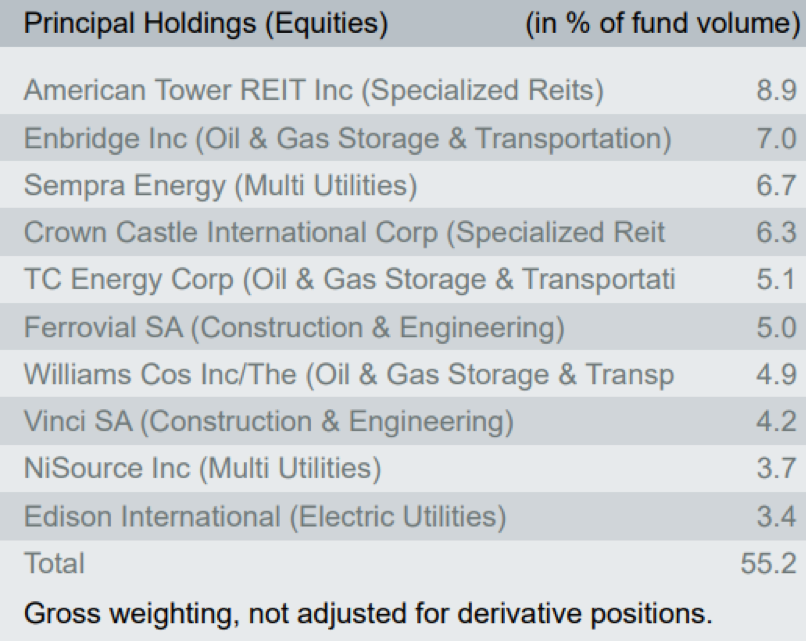 รูปที่ 6 สินทรัพย์ที่ถือครองมากที่สุด 10 อันดับแรกของกองทุน I Source: DWS Invest Global Infrastructure as of 8/10/2019