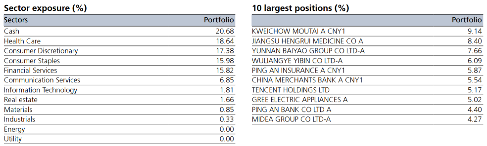 รูปที่ 3 Sector Exposure & Top 10 Holding UBS (Lux) IS – China A Opportunity l Source : UBS As of 9/11/20