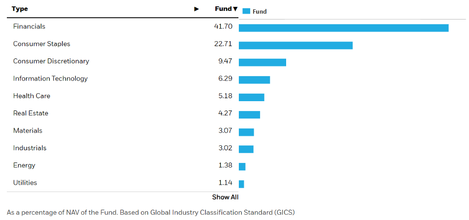 รูปที่ 4 Sector Exposure iShares FTSE A50 China Index ETF l Source : Blackrock As of 9/11/20