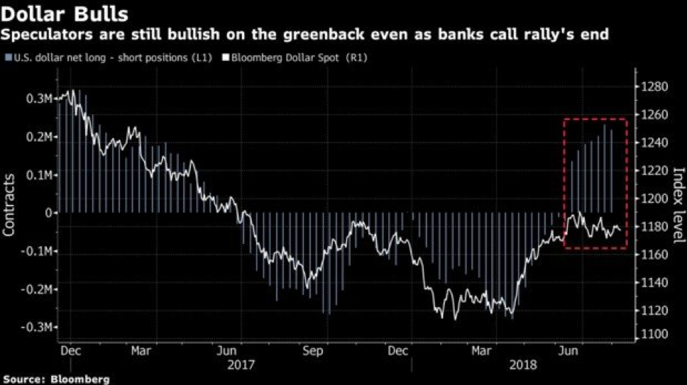 ถึงแม้จะมีความพยายามการขึ้นดอกเบี้ยจากธนาคารกลางในกลุ่มประเทศเกิดใหม่ แต่นักเก็งกำไรก็ยังคงมุมมองของสกุลเงินดอลลาร์ว่ามีแนวโน้มแข็งค่ามาอย่างต่อเนื่อง ซึ่งแสดงให้เห็นผ่านทางสถานะการซื้อที่เป็นบวก ควบคู่ไปกับการแข็งค่าของสกุลเงินดอลลาร์สหรัฐฯ ซึ่งอาจเป็นผลจากอัตราผลตอบแทนต่อความเสี่ยงสินทรัพย์ปลอดภัยของพันธบัตรรัฐบาลสหรัฐฯ ที่มีโดยพื้นฐานแล้วมีสถานะทางเศรษฐกิจแข็งแกร่งกว่าประเทศในภูมิภาคอื่นๆ