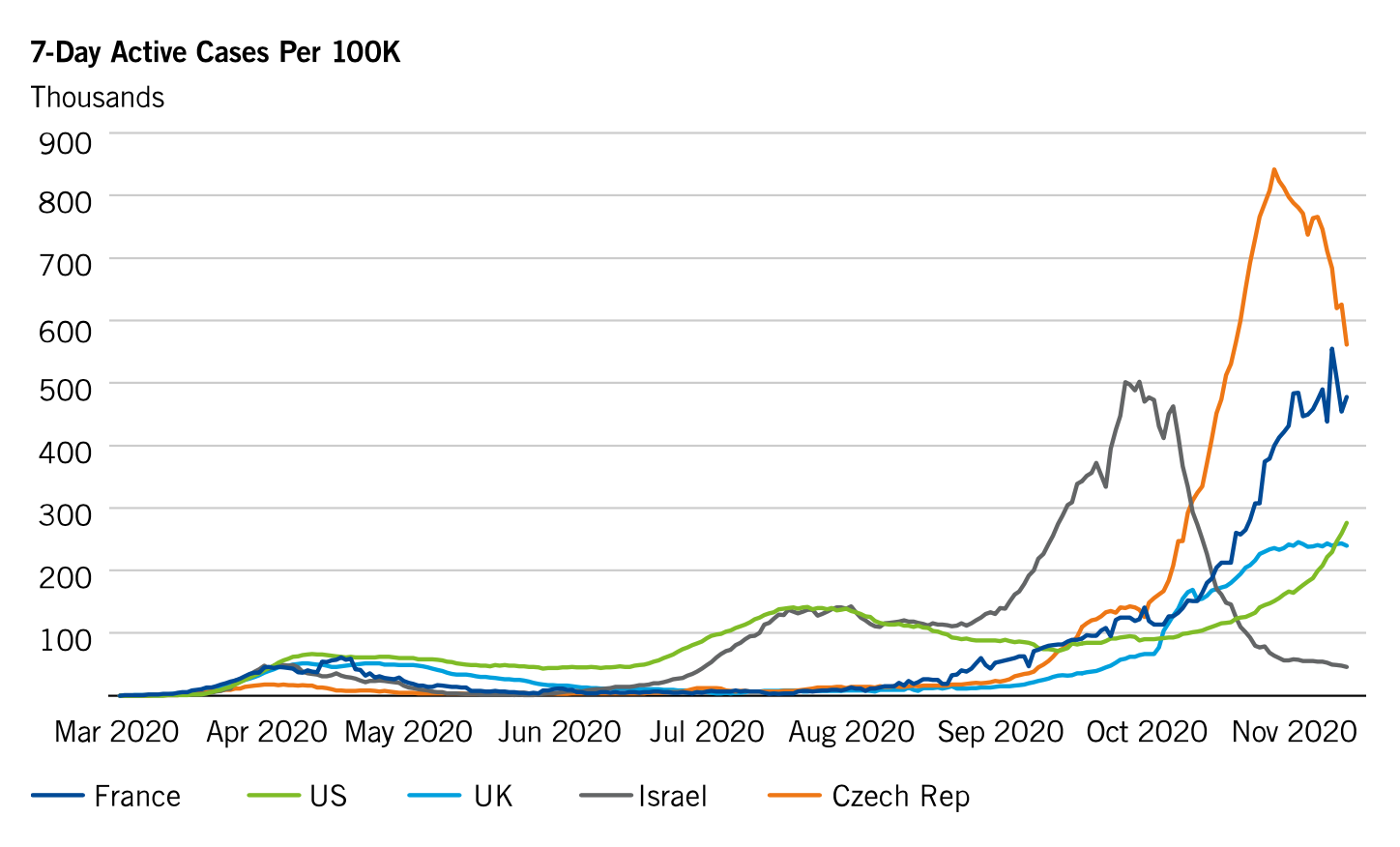 เกมพลิกหลังจากบริษัท Pfizer (Moderna ก็ประกาศตามมาแบบติด ๆ) ออกมาประกาศเกี่ยวกับวัคซีนที่ทางบริษัทอ้างว่ามีประสิทธิภาพในการรักษามากถึง 95% ซึ่งก็เหมือนกับการประกาศจุดจบให้กับ COVID-19 แบบกลาย ๆ ก่อนหน้านี้หลาย ๆ คนอาจนึกภาพไม่ออกว่าโลกนี้จะตกอยู่ในการแพร่ระบาดของโรคร้ายได้อย่างไร แต่หลังจากนี้ทุกคนคงจะไม่สามารถนึกภาพโลกที่ไม่มี COVID-19 ได้อีกแล้ว วัคซีนคิดค้นได้สำเร็จในเวลาที่เหมาะสมเพราะ COVID-19 กำลังกระจายออกไปทั่วโลก ยุโรปสั่งล็อคดาวน์รอบใหม่ในหลายพื้นที่ สหรัฐฯ เองก็กำลังพิจารณาการล็อคดาวน์แบบไม่ให้มีการเดินทางข้ามรัฐ เป็นความโชคดีที่อัตราการเสียชีวิตลดลงอย่างต่อเนื่อง แต่อัตราผู้ติดเชื้อกลับสูงเป็นภูเขาทำให้ยังคงมีความเสี่ยงสูงที่จะเกิดการเสียชีวิตเพิ่มมากขึ้น ในบทบาทนักลงทุน ความท้าทายเราคือชั่งน้ำหนักถึงประโยชน์ของอนาคตที่ไม่มี COVID-19 ด้วยความยากลำบากที่จะพาเราไปจุดนั้นได้