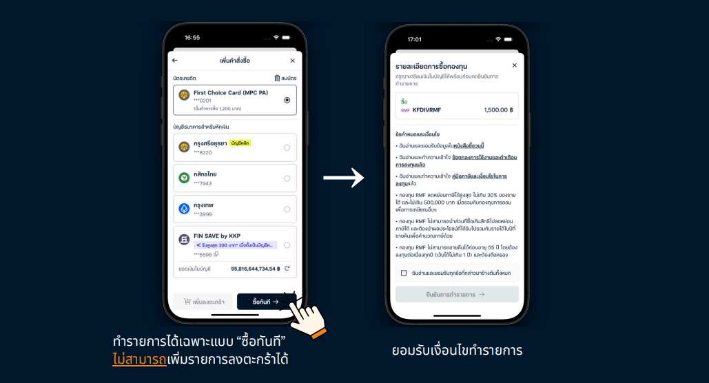 ขั้นตอนการซื้อกองทุนด้วยบัตรเครดิตบนแอป Finnomena