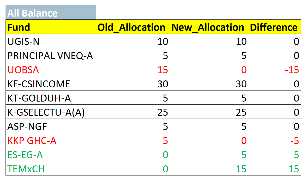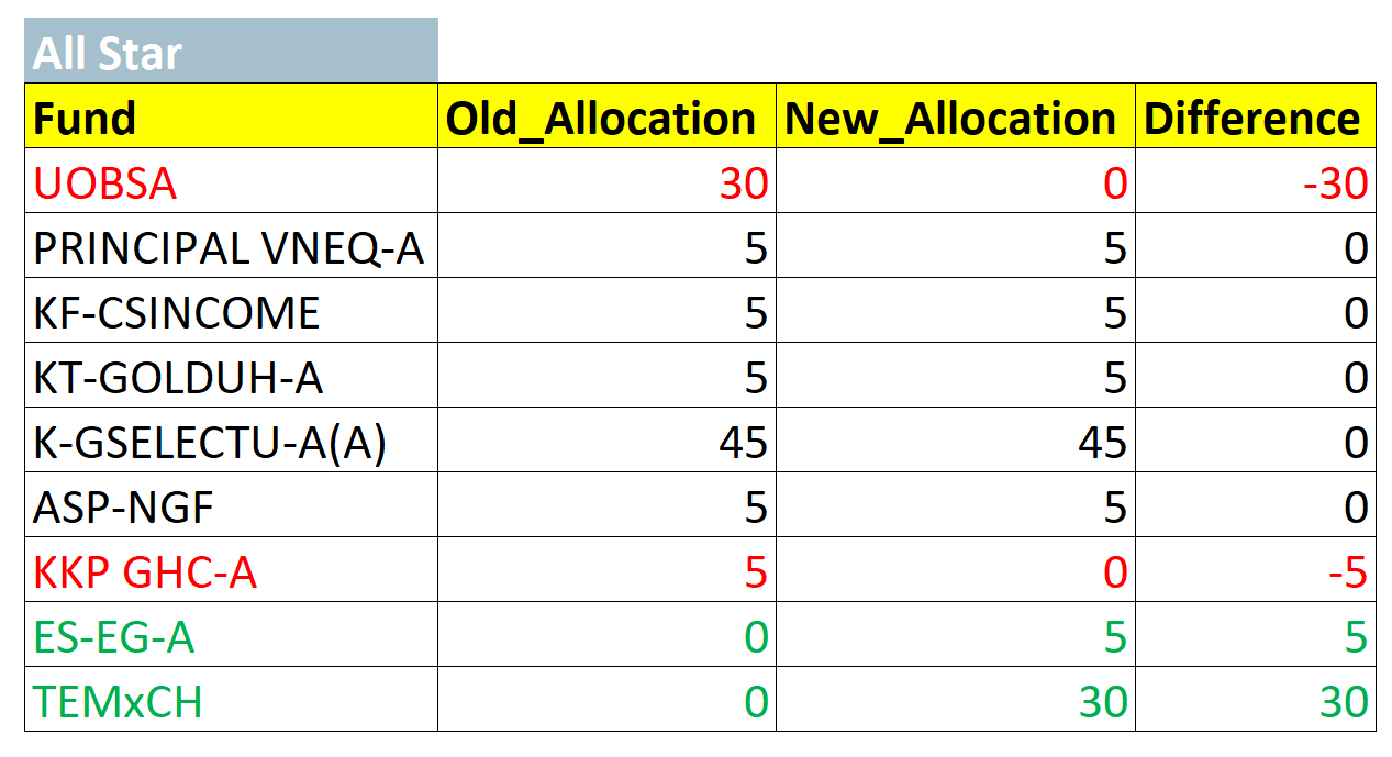 ตารางสรุปการปรับสัดส่วนการลงทุนแผน All Star