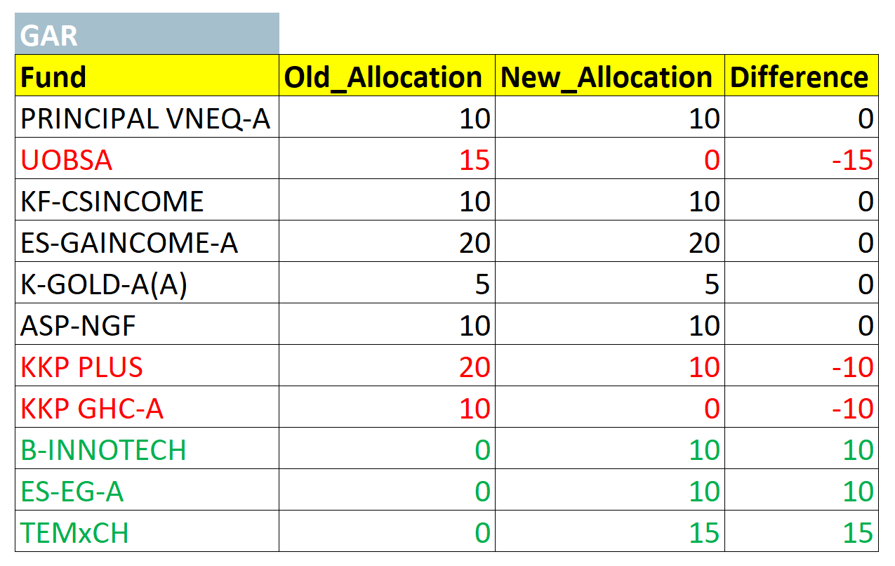 ตารางสรุปการปรับสัดส่วนการลงทุนแผน GAR