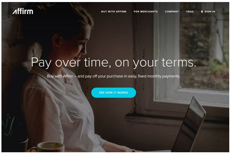 Affirm ทำธุรกิจปล่อยสินเชื่อส่วนบุคคล โดยเป็นการปล่อยสินเชื่อแบบสด ๆ สำหรับการซื้อสินค้าออนไลน์ โดยให้ลูกค้าผ่อนชำระเป็นรายเดือน โดย Affirm จะใช้ AI ในการคำนวณ credit scoring เพื่อเสนออัตราดอกเบี้ยเงินกู้ให้เหมาะสมกับลูกค้าแต่ละราย Affirms ก่อตั้งโดย Max Levchin อดีตผู้ก่อตั้ง paypal และได้ทำการระดมทุนไปแล้วกว่า 500 ล้านเหรียญ