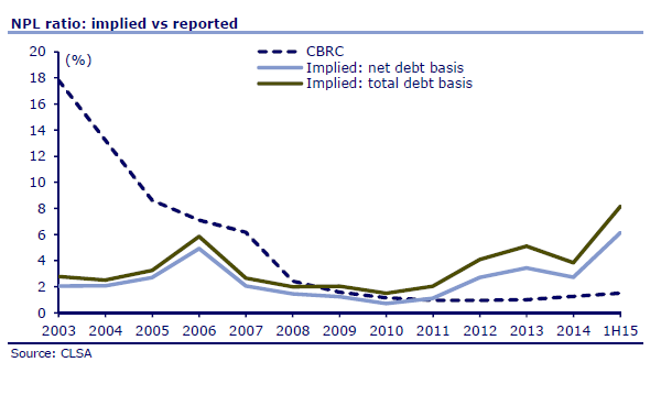 รูปที่ 3 NPL รวมที่ซุกเอาไว้ของจีน | ที่มา CLSA