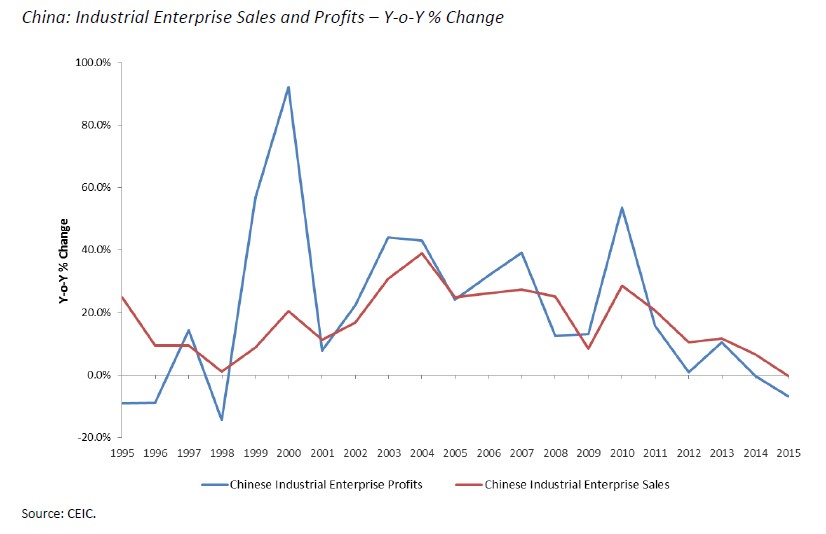 เป็นครั้งแรกนับแต่ครั้งวิกฤตต้มยำกุ้งที่ตัวเลขยอดขายของภาคอุตสาหกรรมเริ่มไม่โต ขณะที่กำไรของภาคอุตสาหกรรมเริ่มติดลบจากปีก่อนหน้าเป็นอีกตัวสะท้อนว่าการขยายตัวของการลงทุนที่มากเกินไปของจีน เริ่มไม่นำไปสู่การเติบโตของยอดขายและผลกำไร ขณะที่ราคาเหล็กที่เป็นตัวสะท้อนภาคการลงทุนได้อ่อนตัวลงอย่างหนัก ส่งผลต่ออุตสาหกรรมเหล็กทั่วโลก รวมทั้งประเทศไทยอย่างกรณีของ SSI ผลของการลงทุนเร็วเกินไปส่วนหนึ่งปรากฏออกมาในรูป Ghost Cities หรือเมืองผีสิงที่เต็มไปด้วยตึกรามบ้านช่องขนาดใหญ่แต่ไม่มีคนเข้าไปอยู่ ไม่มีธุรกิจเข้าไปตั้งรกราก