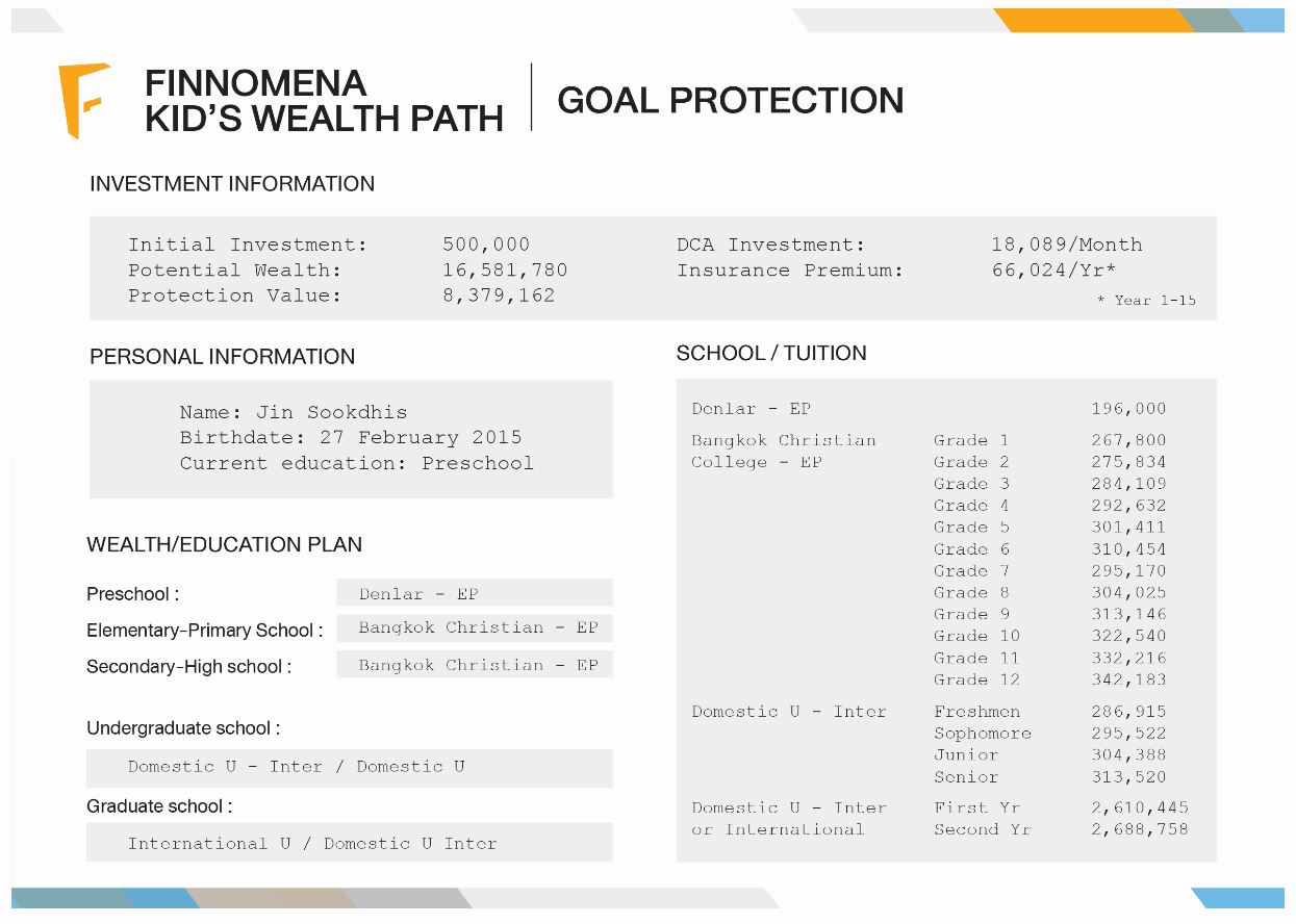 รูปที่ 4 Kid’s Wealth Path ของ ด.ช.จิณณ์ | ที่มา FINNOMENA