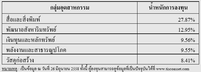 รูปที่ 3 พอร์ตการลงทุนราย Sector ของ TMSRMF ณ สิ้นเดือน มิ.ย. 58 (ที่มา tiscoasset)