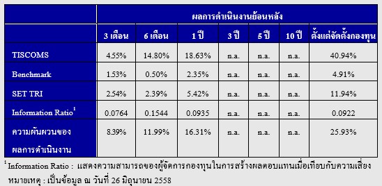 รูปที่ 5 ผลการดำเนินงานกองทุนเปิด TISCOMF ณ 26 มิ.ย. 58 (ที่มา Tisco Asset)