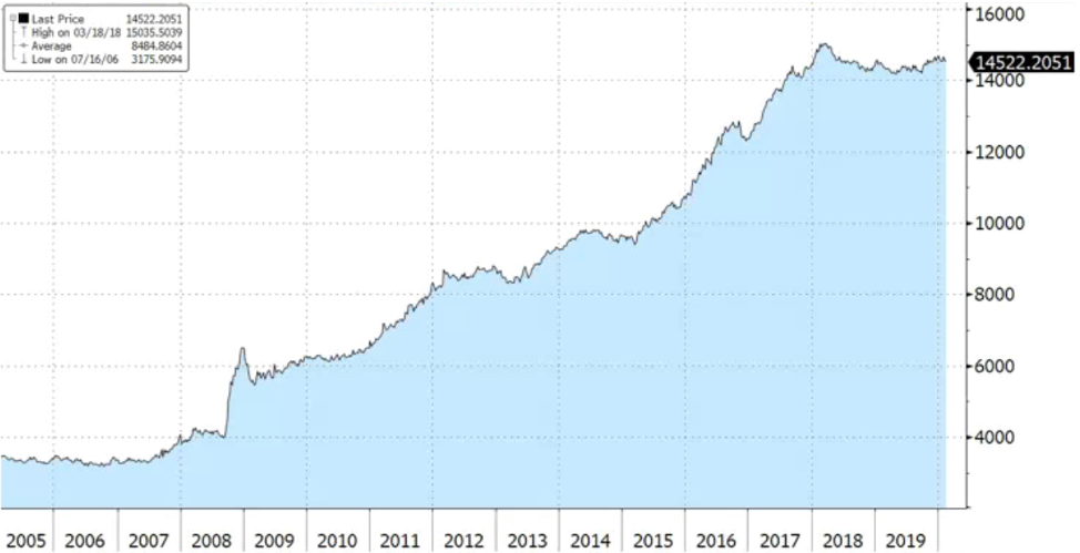 สิ่งที่เกิดขึ้นนับตั้งแต่ไตรมาส 4 ปี 2019 ที่ผ่านมาคือธนาคารกลางสหรัฐฯ กลับมาฉีดเงินเข้าระบบเศรษฐกิจอีกแล้ว ซึ่งทำให้ผลตอบแทนจากการลงทุนใน Risk Free Asset อย่างพันธบัตรรัฐบาลอเมริกา ยุโรป ญี่ปุ่น อยู่ในระดับต่ำมาก ส่งผลให้เม็ดเงินในระบบสถาบันการเงินไหลไปหาการลงทุนที่มีผลตอบแทนมากกว่า ซึ่งส่วนหนึ่งก็ไหลไปที่การปล่อยกู้กับภาคเศรษฐกิจจริงมากขึ้น และแน่นอนอีกส่วนหนึ่งก็ไหลไปที่สินทรัพย์การลงทุนต่าง ๆ