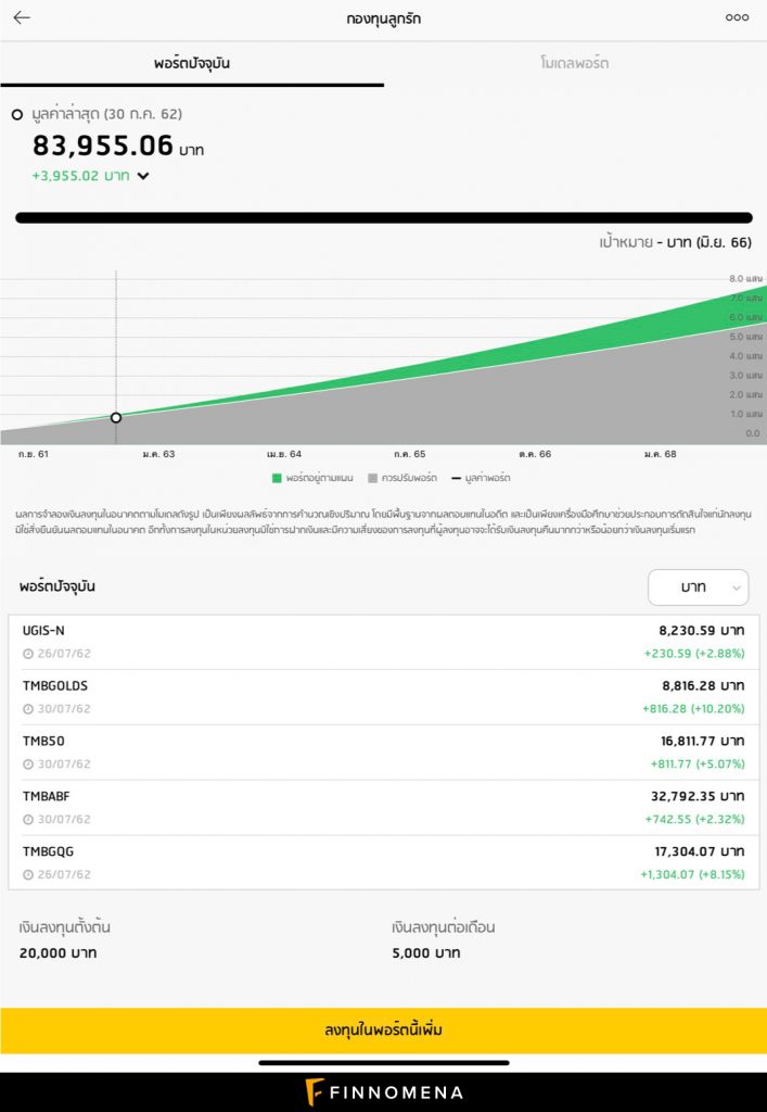 แน่นอนค่ะว่าเราเปิดพอร์ตการลงทุนกับ FINNOMENA ให้คุณพ่อและคุณแม่ เพราะ FINNOMENA มีพอร์ตการลงทุนสำหรับการเก็บเงินเกษียณโดยเฉพาะ มีการคัดเลือกกองทุนรวมมาให้แล้ว และบอกสัดส่วนการลงทุนที่เหมาะสมตามระดับความเสี่ยง