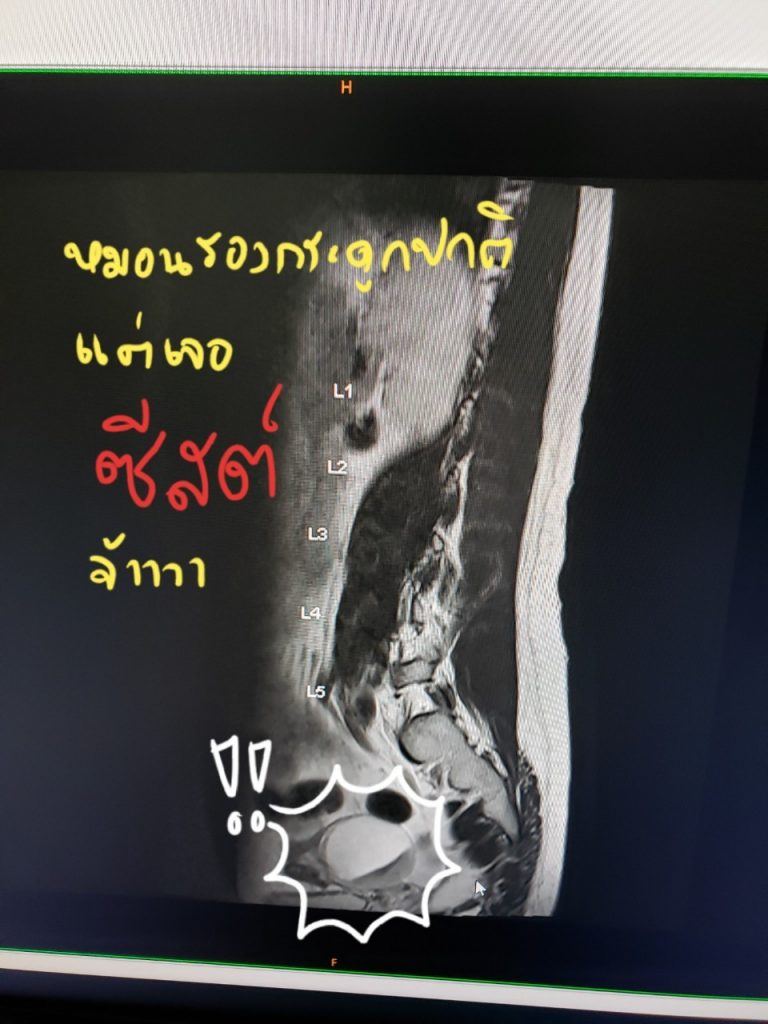ในวันที่เราไปโรงพยาบาล เพราะมีอาการปวดหลังล่างร้าวลงก้นกบฝั่งขวา นานกว่า 1 เดือน ต้องเข้าเครื่อง MRI Scan ดูว่ามีกระดูกสันหลังข้อไหนผิดปกติหรือเปล่า หรือ หมอนรองกระดูกยังอยู่ในที่ปกติไหม