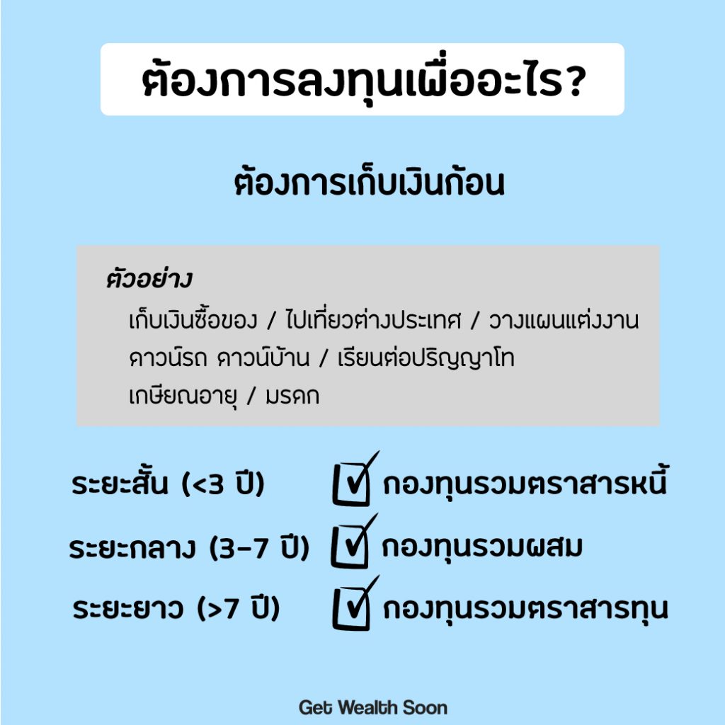 ไม่ว่าเราจะเก็บเงิน หรือ จะไปลงทุนในสินทรัพย์อะไรก็ตาม ขึ้นอยู่กับ “เป้าหมาย” และ “ระยะเวลาการลงทุนด้วย”