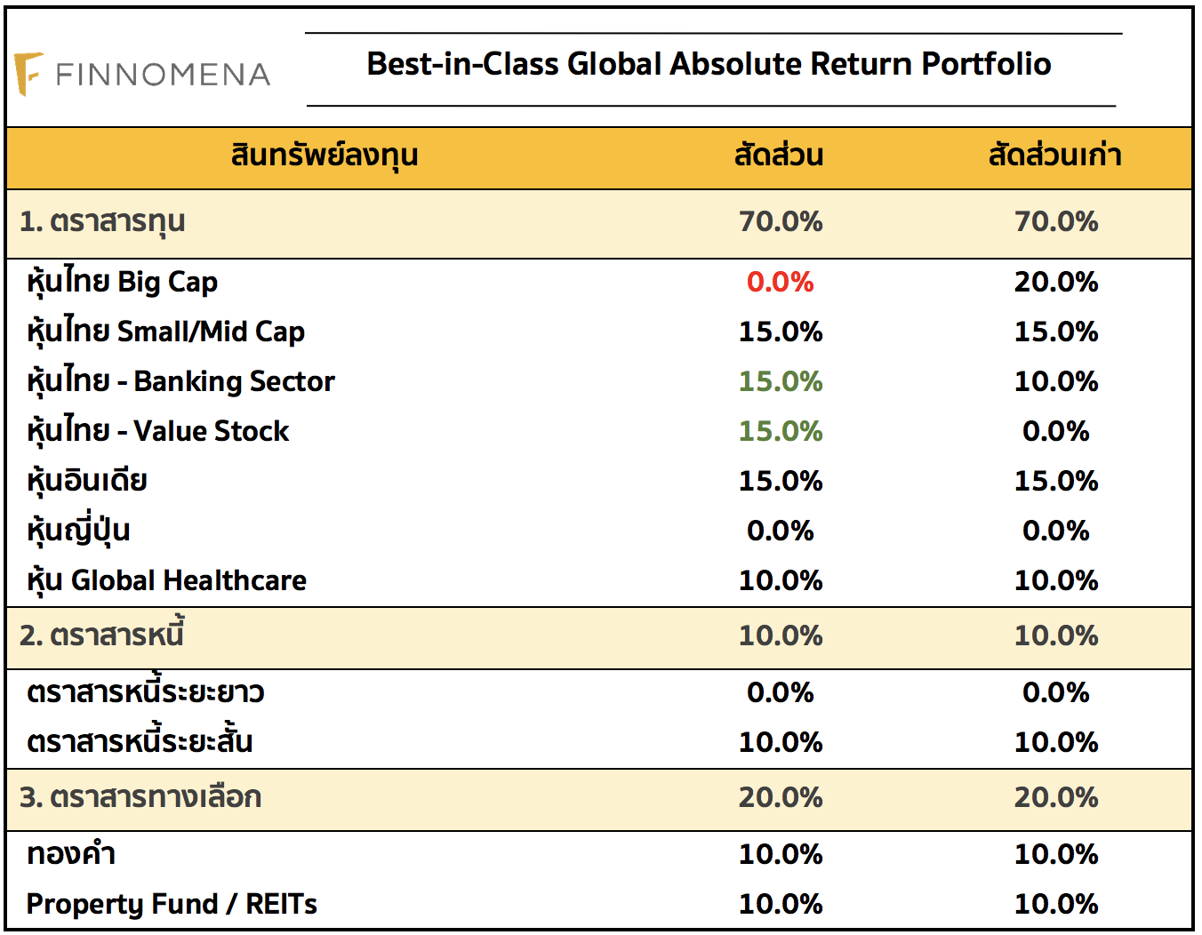 ในเดือนกุมภาพันธ์นี้เราได้คงสัดส่วนการลงทุนในตราสารทุน ที่ 70% โดยแนะนำให้ทำกำไรกลุ่มกองทุนหุ้นไทย Big Cap และย้ายไปที่หุ้นกลุ่มธนาคารไทย และกลุ่มหุ้นไทย Value Stock จาก Valuation ที่น่าสนใจและพื้นฐานของกลุ่มที่กลับมาฟื้นตัว เรายังคงมุมมองเศรษฐกิจและกำไรของบริษัทจดทะเบียนในตลาดหลักทรัพย์โลก และไทยโดยรวมกลับมาเติบโตอีกครั้ง ทำให้ปัจจัยโดยรวมเอื้อต่อการลงทุนในตราสารทุน โดยเราเชื่อว่าปี 2017 น่าจะยังเป็นปีที่ดีต่อพอร์ตการลงทุน Global Absolute Return