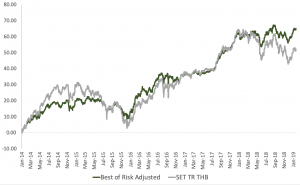 รูปที่ 1: เปรียบเทียบผลตอบแทนย้อนหลัง ระหว่างพอร์ต Best of Risk Adjusted Return และ SET TR (ที่มา: FINNOMENA)