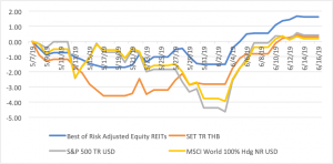 ในช่วงเดือน 6 เป็นเดือนที่ตลาดหุ้นขึ้นมาค่อนข้างเยอะ แต่ดูเหมือนว่ากองอสังหาริมทรัพย์จะทำผลตอบแทนได้สูงกว่ากองทุนหุ้นอีกครับ ซึ่งผมคิดว่าค่อนข้างขัดกับหลักการ High Risk High Return พอสมควร