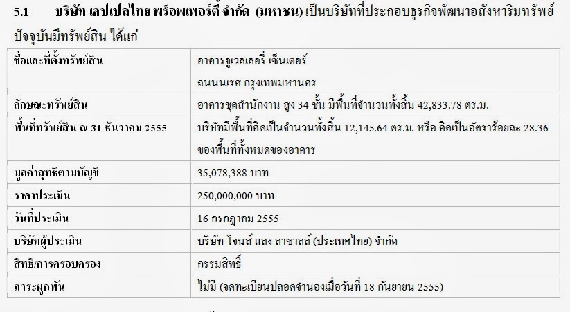- ทรัพย์สินที่ใช้ในการประกอบธุรกิจเข้า http://www.set.or.th/th/index.html แล้วไปที่ ค้นหาหลักทรัพย์ ให้เราใส่ หลักทรัพย์ที่เราต้องการ