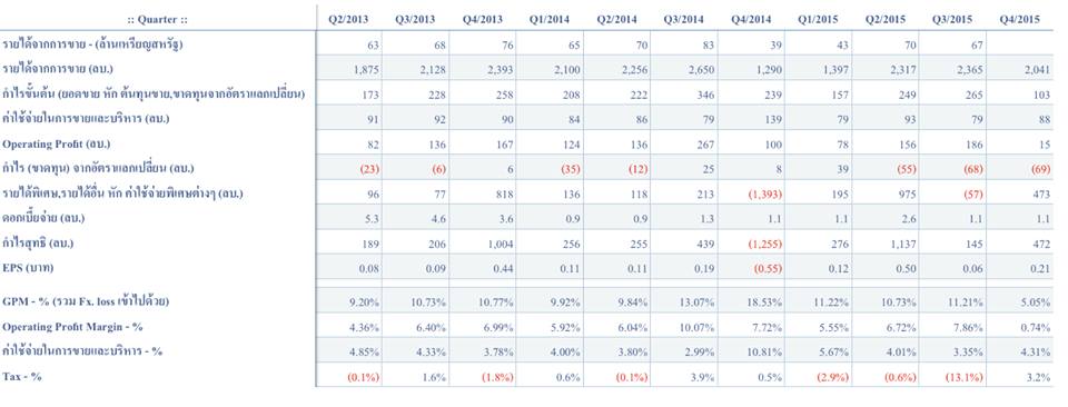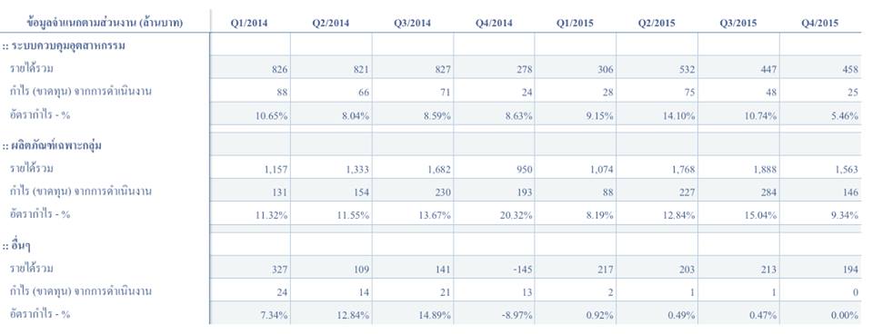 – ตามแผนงานรายได้ในปี2016 อยู่ที่ 370-400m$ (โรงงานในไทย 270m$, SVI EU 100m$ ส่วนที่เหลือเป็นลูกค้าใหม่ที่จะมาเพิ่มในปีนี้)