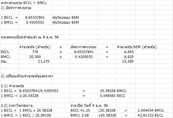 1 หุ้นเดิม BECL = 8.65537841 หุ้นใหม่ของ BEM