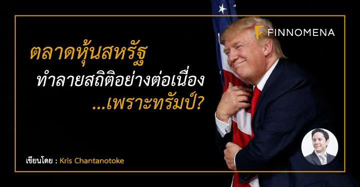 ครั้งแล้วครั้งเล่า ที่เกิดประเด็นร้อนในทำเนียบขาวจนทำให้นักลงทุนมองว่า จะเป็นเหตุการณ์ฉุดความเชื่อมั่นและหยุดความต่อเนื่องของดัชนีหุ้นสหรัฐ แต่ตลาดก็สร้างความประหลาดใจและโตทำลายสถิติมาอย่างสม่ำเสมอ โดยล่าสุดเมื่อวันที่ 14 กรกฎาคม (ณ วันที่เขียนบทความ) ดัชนีดาวโจนส์ ได้ทำลายสถิติสูงสุดที่ 21,637.74 จุด ซึ่งเป็นการทำลายสถิติตัวเองถึง 42 ครั้ง นับจากการประกาศผลเลือกตั้งในปี 2016