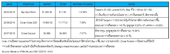 - ความเคลื่อนไหวน่าจะยังเป็นกรอบแคบๆไปจนสิ้นปีมากกว่า รอดูความชัดเจนอีกครั้งในช่วงต้นปีหน้า Neutral: KT-GOLD, KT-PROPERTY, KT-GMO