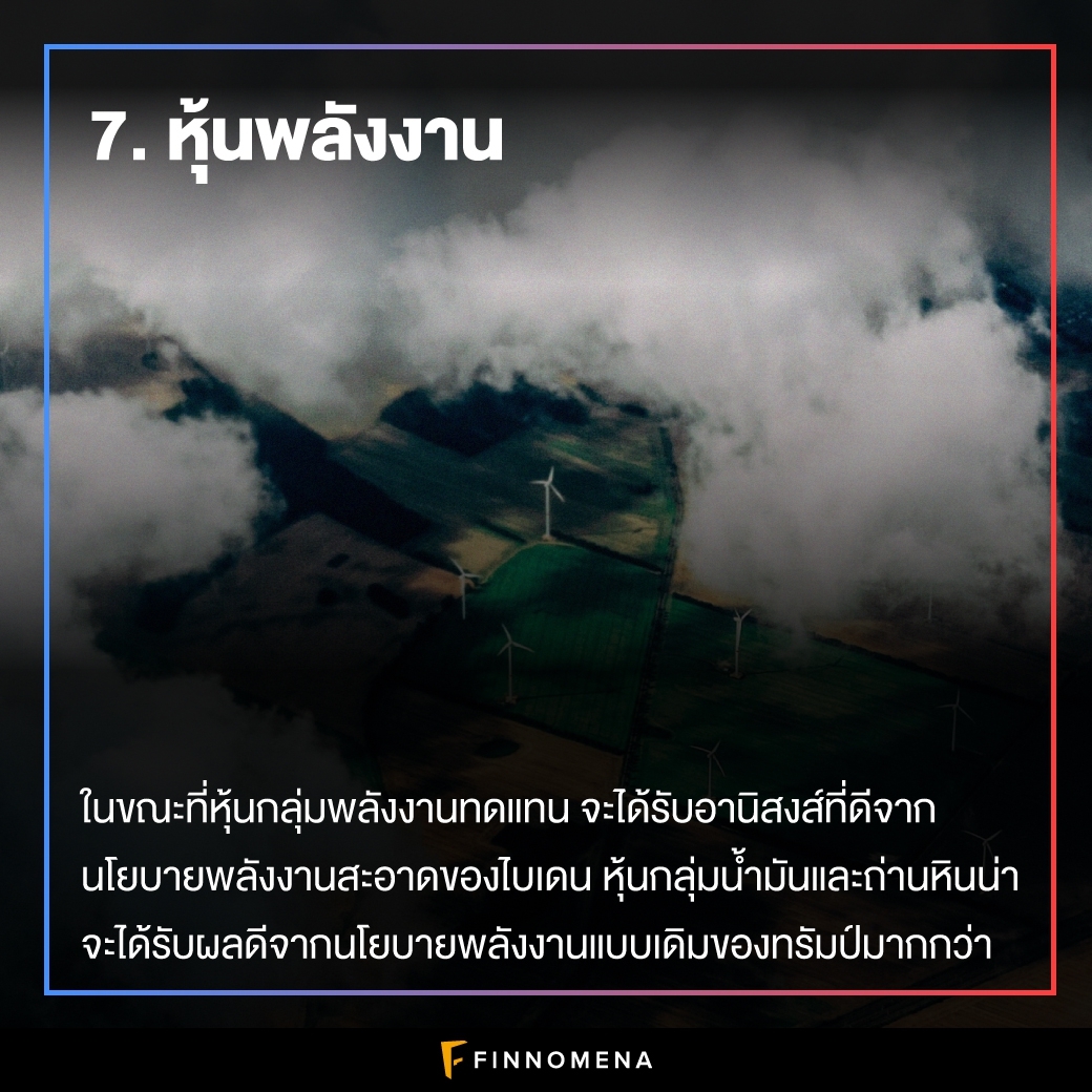 เจ็ด หุ้นพลังงาน ในขณะที่หุ้นกลุ่มพลังงานทดแทน จะได้รับอานิสงส์ที่ดีจากนโยบายพลังงานสะอาดของไบเดน หุ้นกลุ่มน้ำมันและถ่านหินน่าจะได้รับผลดีจากนโยบายพลังงานแบบเดิมของทรัมป์มากกว่า