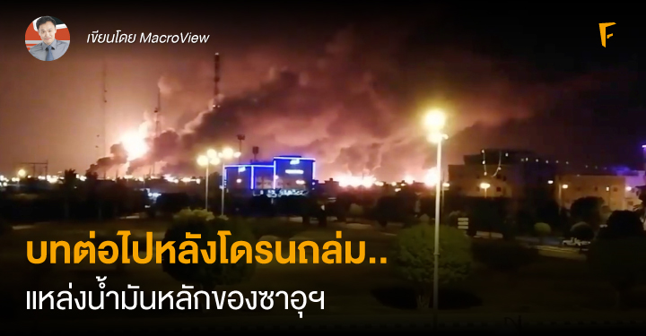 ทว่าต้องหลีกทางให้กับเหตุการณ์ที่สำคัญที่สุดในประวัติศาสตร์ของวงการน้ำมันดิบ เมื่อโดรนราว 10 ตัวที่อ้างว่ามาจากกลุ่มฮูตี ได้ร่วมกันบุกถล่มโรงแยกก๊าซและของเสียออกจากน้ำมันดิบ ’อับคิก’ ที่ถือว่าใหญ่ที่สุด คิดเป็นถึงครึ่งหนึ่งของกำลังการผลิตน้ำมันดิบรวมของซาอุดิอาระเบีย และบ่อน้ำมันดิบขนาดใหญ่ ‘คูลิส’ จนราคาน้ำมันดิบเบรนท์พุ่งขึ้นสูงสุดถึงร้อยละ 20 ในวินาทีแรกของการเปิดตลาดเมื่อเช้าวันจันทร์ ก่อนที่ทั้งราคาน้ำมันดิบเบรนท์และ WTI จะกลับมาเพิ่มขึ้นราวร้อยละ 10 ณ เวลาปิดตอนสิ้นวันทำการ โดยบทความนี้จะขอตอบคำถามว่า บทต่อไปหลังโดรนถล่มแหล่งน้ำมันดิบหลักของซาอุดิอาระเบีย จะเป็นเช่นไร ดังนี้