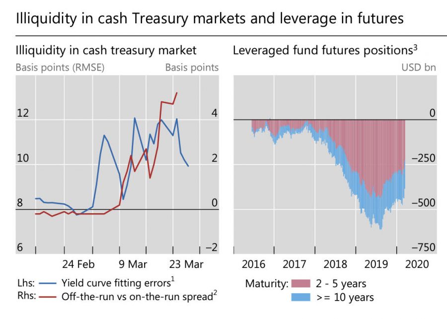ครั้นเมื่ออัตราดอกเบี้ยพันธบัตรสหรัฐลดลงเหมือนเมื่อเดือนมี.ค.ที่ผ่านมา นักลงทุนดังกล่าวก็เกิดการขาดทุนต้องทำการยกเลิกการ Short (มูลค่าสัญญาการ Short ตราสารพันธบัตรสหรัฐทั้งหมดลดลงจาก 7.5 แสนล้านดอลลาร์ในเดือนม.ค.2020 เหลือ 2 แสนล้านดอลลาร์ในเดือนมี.ค./เม.ย. 2020 นอกจากนี้ ยังพบว่านักลงทุนนอกสหรัฐทำการขายพันธบัตรระยะยาวสหรัฐเกือบ 4.7 แสนล้านดอลลาร์ในช่วงเดือนมี.ค./เม.ย. ที่ผ่านมา โดยส่วนใหญ่การขายมาจากเกาะเคย์แมนส์) หรือทำการขายตราสารพันธบัตรสหรัฐที่วางเป็นหลักประกันเพื่อชดใช้การขาดทุนนี้ ซึ่งตลาด Repo เป็นแหล่งเงินกู้ของนักลงทุนเหล่านี้ เราจึงเห็นอัตราดอกเบี้ย Repo สหรัฐผันผวนมากในช่วงนั้น จากนั้นเมื่อเฟดทำการอัดเงินเข้าตลาด Repo แบบไม่อั้น เหตุการณ์ความผันผวนของตลาดพันธบัตรสหรัฐจึงคลี่คลายลง