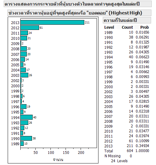 ภาพที่ 1 : Barchart แสดงจำนวนหุ้นที่มีจุดสูงสุดหรือ Highest High อยู่ในปีนั้นๆ ตั้งแต่ปี 1989 – 2013