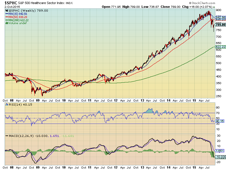กองทุน ‘Healthcare Sector’ พุดขึ้นมาเยอะทีเดียวในช่วง 2 ปีที่ผ่านมา นี่คือครั้งแรกที่กองทุนประเภทนี้ เจอแรงเสียดทาน ซึ่งจะว่าไปแล้ว นี่เป็นแรงเสียดทานครั้งที่แรงที่สุดนับตั้งแต่ปี 2008 เลยทีเดียว (ดูจากกราฟดัชนี S&P500 Healthcare Sector ด้านล่างดูครับ