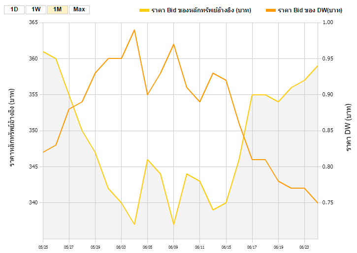 - สิทธิในการขายหุ้นอ้างอิงในอนาคต ในราคาที่กำหนดไว้ในสัญญา เราเรียกสัญญาประเภทนี้ว่า Put DW