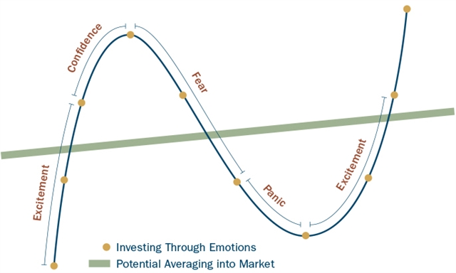 คำที่ได้ยินบ่อยกว่า นั้นก็คือ Dollar Cost Average (DCA) ด้วยวิธีนี้ นักลงทุนไม่จำเป็นต้องไปพยายามวิเคราะห์ตลาดว่า อยู่ในช่วงวัฏจักรใด เพราะการลงทุนด้วยเงินจำนวนเท่าๆกันสม่ำเสมอ เมื่อตลาดขาลง ราคาหุ้นตกลง นักลงทุนจะได้จำนวนหน่วยเพิ่มขึ้น และเมื่อตลาดขาขึ้น ก็ได้จำนวนหน่วยที่ลดลง เป็นการบริหารหน้าตักเราโดยธรรมชาติอยู่แล้ว