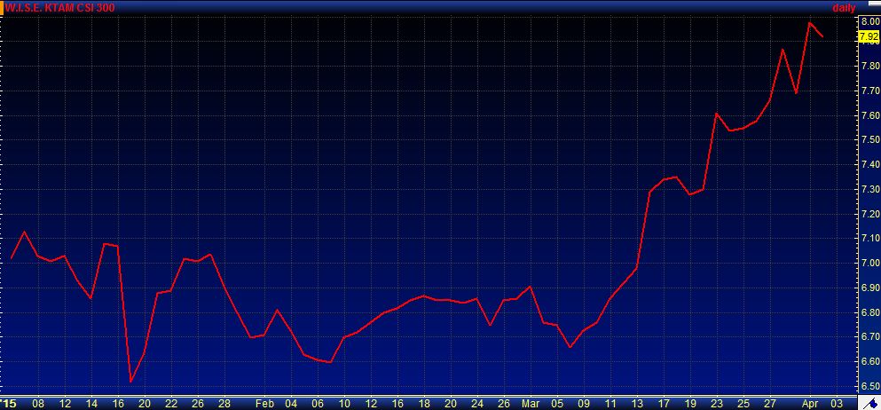 กองทุนนี้เป็น ETF ที่สามารถซื้อขายในตลาดรองผ่านระบบ Streaming ได้เหมือนหุ้นตัวหนึ่งในตลาดหลักทรัพย์ โดยพิมพ์ชื่อย่อว่า “CHINA” ออกโดย บลจ.กรุงไทย โดยกองทุนจะไปลงทุนในกองแม่ที่ชื่อ W.I.S.E. – CSI 300 China และกองแม่ก็มีนโยบายการลงทุนก็คือ พยายามจะเกาะผลตอบแทนของดัชนี CSI 300 โดยจะลงทุนใน A Shares Access Products (AXPs) นั้นเอง ดังนั้น การเคลื่อนไหวของ “CHINA” จะวิ่งตามดัชนี A-Share ที่อยู่ในจีน Mainland สาเหตุที่กองทุนนี้ผลตอบแทนวิ่งขึ้นมาดีเป็นอันดับสองก็มาจากภาพ Macro View เช่นเดียวกัน โดย NAV มาดีดแรงจิงๆก็ช่วงต้นเดือน มี.ค. ที่ PBoC ประกาศลดอัตราดอกเบี้ย ทำให้นักลงทุนคาดว่าจะมีนโยบายผ่อนคลายออกมาอีกเป็นชุดๆเพื่อคอยกระตุ้นเศรษฐกิจที่ทำท่าทางจะ Soft Landing รวมถึงการที่ทางการจีนทยอยทำ QE แบบเงียบๆ ก็ทำให้นักงทุนเชื่อมั่นว่า จะสามารถยันให้ GDP Growth ของจีนยืนอยู่บนเป้าที่ 7.0% ได้ ดังนั้นแรงซื้อของนักลงทุนก็ไล่ให้ราคาวิ่งขึ้นมาอย่างรวดเร็ว ทั้งๆที่ปลายปีที่แล้วก็วิ่งมาไม่น้อยเลย จริงๆผมเขียนเรื่องจีนมาตั้งแต่ปลายปี และชอบจีนมาตั้งแต่เดือน ต.ค. นะครับ กลับไปอ่านวิเคราะห์แบบเจาะลึกได้ที่ 4 เหตุผล ที่ Mr.Messenger กัดฟันลงทุนใน “จีน”