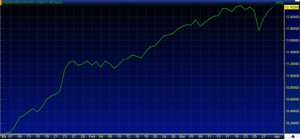 กองทุนนี้ ไปลงทุนในตลาดหุ้นยุโรปผ่านกองทุนแม่ที่ชื่อ Allianz Europe Equity Growth Fund ซึ่งแน่นอนว่า ผลตอบแทนที่ดีนั้น มาจาก Macro View หลัง ECB ประกาศอัดฉีด QE เป็นครั้งแรก ทำให้นักลงทุนคาดหวังว่าสภาพคล่องส่วนเกินในระบบการเงินนั้น จะทำให้มีเม็ดเงินบางส่วนไหลไปลงทุนในตลาดหุ้นยุโรปซึ่ง Valuation และระดับราคาหุ้นยังถูกกว่าภูมิภาคอื่นๆ แต่การไปลงทุนในประเทศที่มีนโยบาย QE นั้น มีความเสี่ยงเรื่องค่าเงินที่มีโอกาสอ่อนค่าต่อเนื่อง ซึ่งทางกองทุน KF-HEUROPE ก็ขจัดปัญหาด้วยการป้องกันความเสี่ยงจาก FX แบบ 100% (Fully Hedge) ครับผม