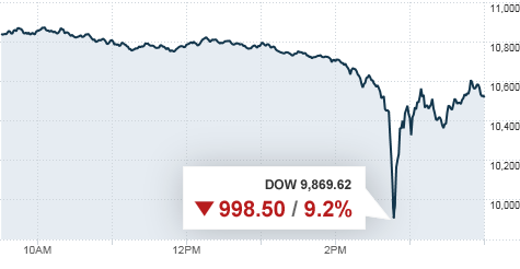 เหตุการณ์ในวันนั้น นักลงทุนในตลาดเกิดความกังวลเกี่ยวกับปัญหาหนี้กรีซว่าจะซ้ำรอยวิกฤต Subprime ที่เพิ่งผ่านไปไม่ถึง 2 ปี ตลาดหุ้นเปิดมาปั๊บก็เทรดในแดนลบ จนผ่านไปครึ่งวันจากลบ 100 จุด Dow Jones ก็ลงไปถึง 300 จุด และเพียงไม่ถึง 10 นาทีหลังงจากนั้น Dow Jones ดิ่งลงไปเกือบถึง 1,000 จุด ไปทำจุดต่ำสุดที่ 9,880 จุด ก่อนเด้งจากจุดนั้นขึ้นมาปิดตลาดที่ 10,517.83 จุด หรือดีดขึ้นมากว่า 600 จุดภายใน 20 นาที แต่หายนะครั้งนั้นไม่รุนแรงเท่า Black Monday ถึงแม้นับเป็นจุดแล้ว ลงมากกว่า แต่เพราะ Dow Jones ในปี 2010 เทรดที่ระดับ 10,000 จุดแล้ว เมื่อนับเป็นเปอเซ็นต์เลยไม่แรงเท่า Black Monday ส่วนสาเหตุก็เกิดจาก Algorithm Trading ที่ต่างแห่กันเทขาย ซึ่งต้นตอก็เกิดจากหุ้น Procter & Gamble เพียงแค่ตัวเดียว ที่ทำให้ระบบเทรดส่งคำสั่งเทขายทั้งตลาดเป็นโดมิโนออกมาและด้วยเหตุการณ์ Flash Crash ครั้งนั้น Wall street จึงเพิ่งตั้ง Circuit breakers ไว้ที่ -10% ขึ้นมา (จริงๆน่าจะตั้งไว้ตั้งนานแล้วนะเนี่ย)