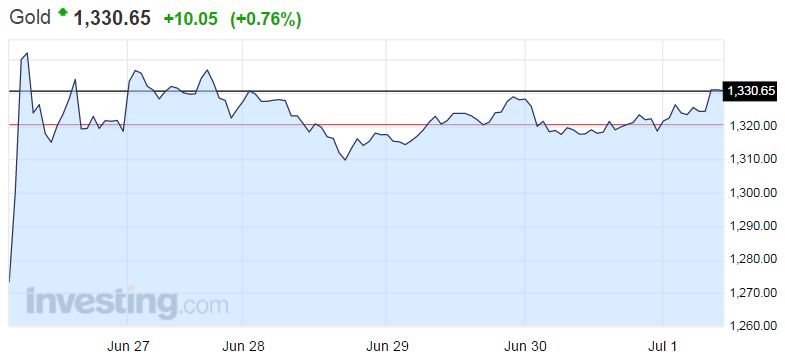 ✍ มาที่ Safe Haven อย่างทองบ้าง หลัง BREXIT ราคาทองดีดขึ้นกว่า $100 ขึ้นไปทดสอบที่ $1,370 ก่อนมีแรงเทขายลงมาแกว่งในกรอบ $1,320 – $1,330