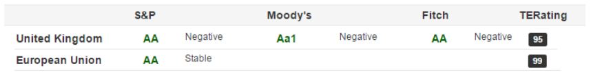 รูปที่ 1 : Credit Rating ของประเทศอังกฤษ และ EU