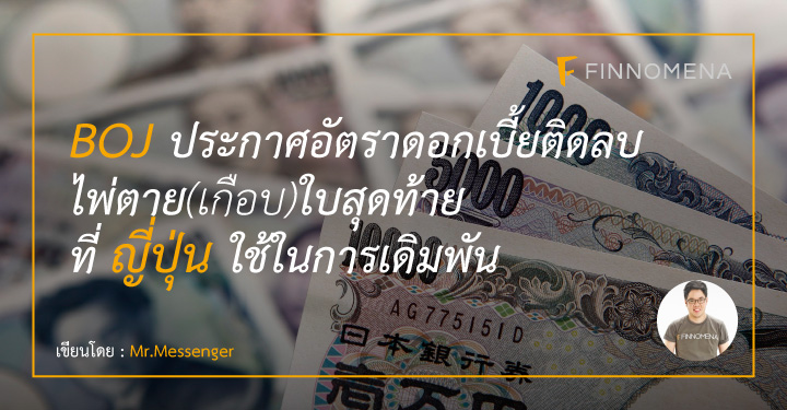 วันนี้ BOJ หรือธนาคารกลางญี่ปุ่นประกาศปรับอัตราดอกเบี้ยเงินฝากของเงินที่ธนาคารพาณิชย์ในญี่ปุ่นจะฝากไว้กับ BOJ จากเดิมที่ 0.1% เหลือ -0.1% (Negative Interest Rate) และดูเหมือนจะสร้างความประหลาดใจให้ตลาดพอสมควร เพราะ Kuroda ประธาน BOJ ไม่เคยให้ความเห็นว่าจะดำเนินนโยบายแบบนี้มาก่อน