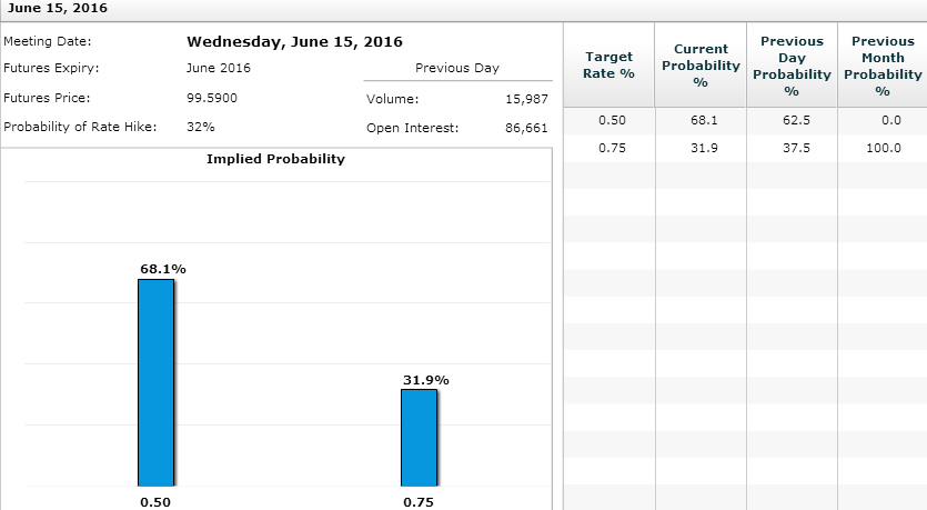 รูปที่ 1 : Fed Fund Futures ให้โอกาสขึ้นดอกเบี้ย เดือน มิ.ย. 2016 ขึ้นมาที่ 31.9%