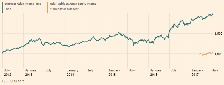 อีกด้าน Schroder Asian Income Fund มีสัดส่วนการลงทุนในตราสารหนี้เอเชียประมาณ 30% ของพอร์ต ได้ประโยชน์จาก Fund Flow ไหลเข้าพอสมควร ขณะที่ตราสารหนี้เอกชนประเภท Investment Grade ทางกองทุน ก็ได้มีการเพิ่มสัดส่วนในประเทศอินโดนีเซีย จากการที่ S&P มีการปรับเพิ่ม Credit Rating โดยล่าสุด Duration ของฝั่งตราสารหนี้ในพอร์ต ณ ปัจจุบันต่ำกว่า 2 ปี ซึ่งดีในแง่ว่า ผันผวนน้อยหากอัตราดอกเบี้ยในตลาดมีการเปลี่ยนแปลงไป