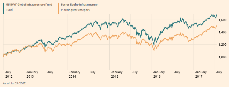 กองทุน Morgan Stanley Investment Funds Global Infrastructure, Class Z (กองทุนหลัก) เน้นลงทุนในธุรกิจที่เกี่ยวข้องกับโครงสร้างพื้นฐานทั่วโลก ใน Top 10 Holdings ของกองทุนหลัก หุ้นที่ให้ผลตอบแทนสูงสุดย้อนหลัง 1 ปี ได้แก่ John Laing Group PLC, Hopewell Highway Infrastructure Ltd และ American Tower Corp ซึ่งราคาหุ้นปรับขึ้นมาจากผลการดำเนินงานที่ดี และได้ประโยชน์ต่อที่สองจากการที่ธนาคารกลางของประเทศแกนหลักอย่าง เฟด และ ECB ยังคงดำเนินนโยบายการเงินแบบผ่อนคลาย และทำให้อัตราดอกเบี้ยอยู่ในระดับต่ำ จึงทำให้เม็ดเงินลงทุนไหลเข้าลงทุนในธีมการลงทุนที่จ่ายกระแสเงินสดสม่ำเสมอเช่นนี้