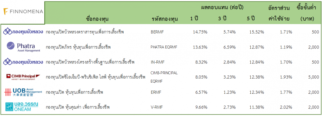 กองทุน RMF ประเภทตราสารทุน