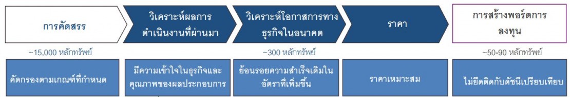 - เน้นบริษัทที่เติบโตอย่างมีเสถียรภาพและ มีราคาที่สมเหตุสมผล