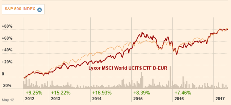 รูปที่ 2 : ผลการดำเนินงาน Lyxor ETF MSCI World เปรียบเทียบ S&P 500 Index