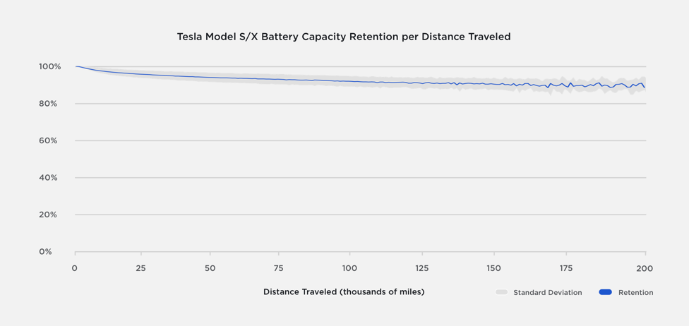 ภาพแสดงระยะทางสูงสุดจากแบตเตอรี่รถยนต์ของ Tesla ในรถรุ่น Model S และ Model X ที่มา: tesla.com