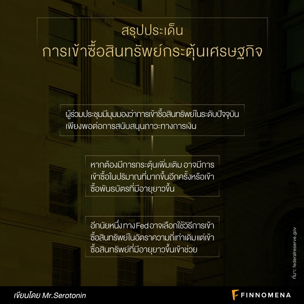 - ผู้คนในตลาดบางส่วนมีการคาดหวังให้ Fed เข้าซื้อสินทรัพย์ (พันธบัตรต่าง ๆ) ในอายุที่ยาวยิ่งขึ้น เพื่อรักษาสภาพคล่องของตลาดต่อไป