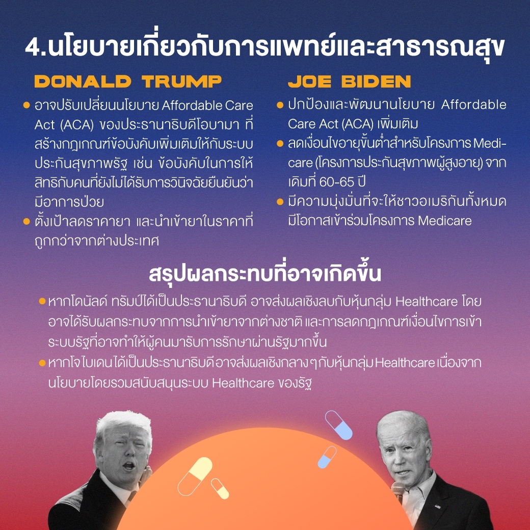 - อาจส่งผลเชิงกลาง ๆ กับหุ้นกลุ่ม Healthcare เนื่องจากนโยบายโดยรวมสนับสนุนระบบ Healthcare ของรัฐ