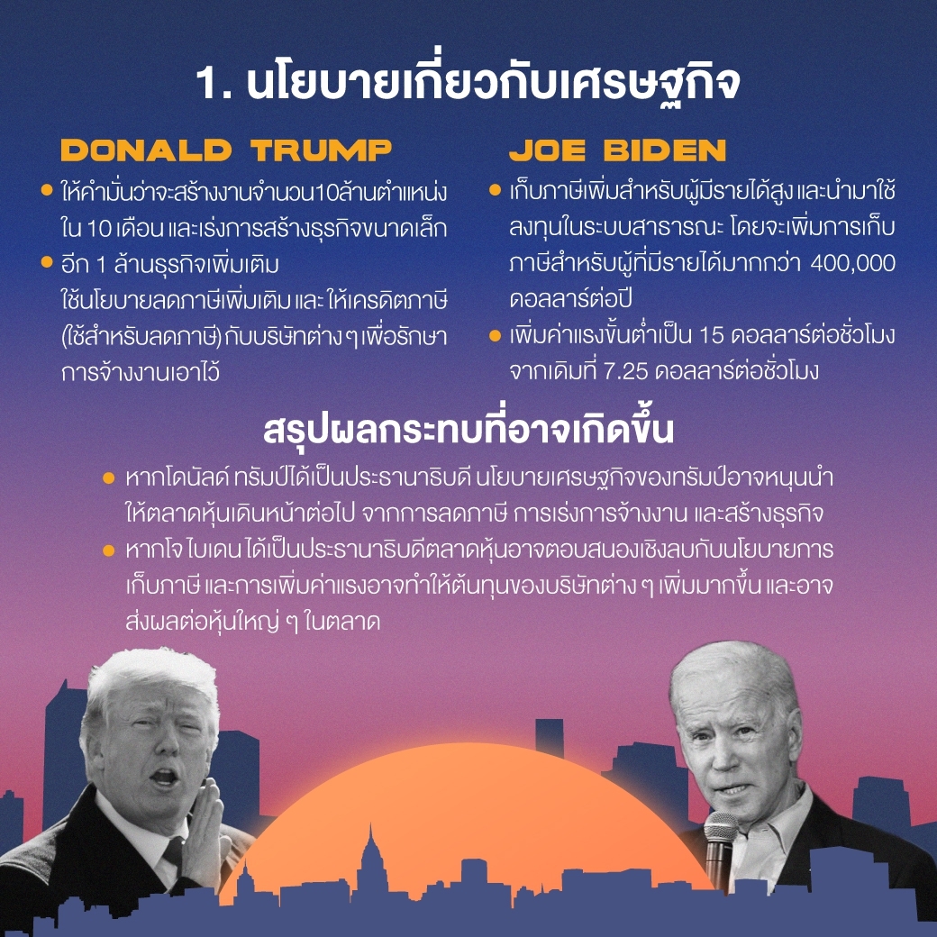 ซึ่งการตีความความคิดของผู้คนนั้นมีเป็นอะไรที่มีโอกาสพลิกโผได้ เพราะคนทุกคนไม่สามารถมองอะไรเป็นมุมเดียวกันได้หมด ตัวอย่างเช่น หาก โจ ไบเดน ได้เป็นประธานาธิบดี แทนที่ตลาดจะตีความว่า ไบเดน จะขึ้นภาษีทำให้กำไรของบริษัทลดลงตลาดหุ้นลงแน่ ๆ ตลาดก็อาจจะตีความไปในเชิงอีกแบบหนึ่งอย่างเช่น “ถ้า ไบเดน ได้เป็นการเมืองน่าจะนิ่งขึ้น ความสัมพันธ์กับจีนดีขึ้น คิดดูอีกที… ในระยะยาวน่าจะดี เราลงทุนดีกว่า” อะไรแบบนี้ก็เป็นได้ครับ