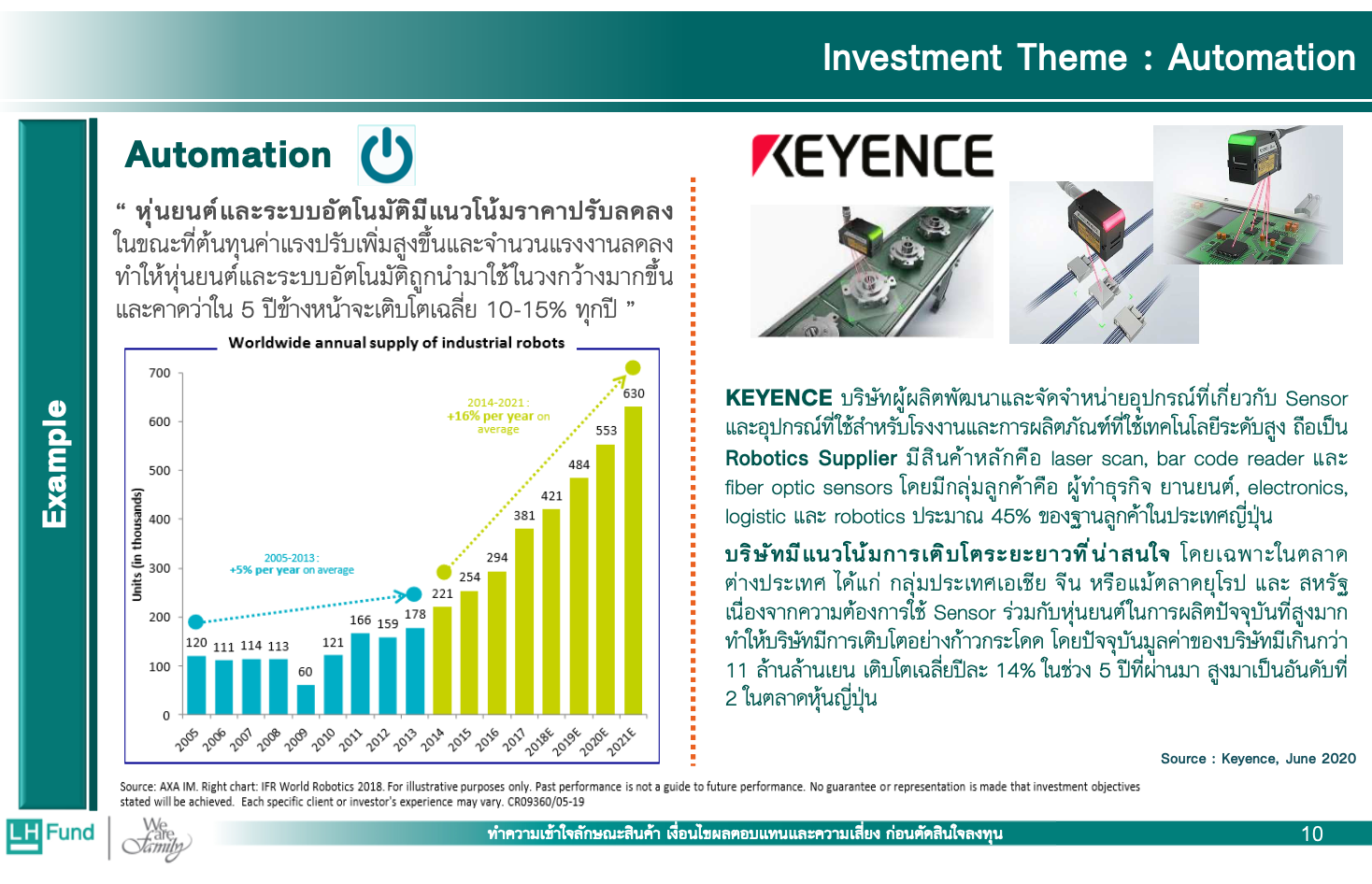 ลงทุนใน Theme ต่าง ๆ ข้างต้น ลงทุนในหุ้นขนาดกลางถึงเล็กราว ๆ 30% ซึ่งเป็นธุรกิจที่ไม่เน้นการกระจายรายได้ และยึดมั่นกับผลิตภัณฑ์ที่ทำ โดยให้ความสำคัญกับสภาพคล่องของธุรกิจ และมีเงื่อนไขที่ว่าธุรกิจต้องสามารถทำรายได้ผ่านธีม New Economy ในสัดส่วน 70% ขึ้นไป